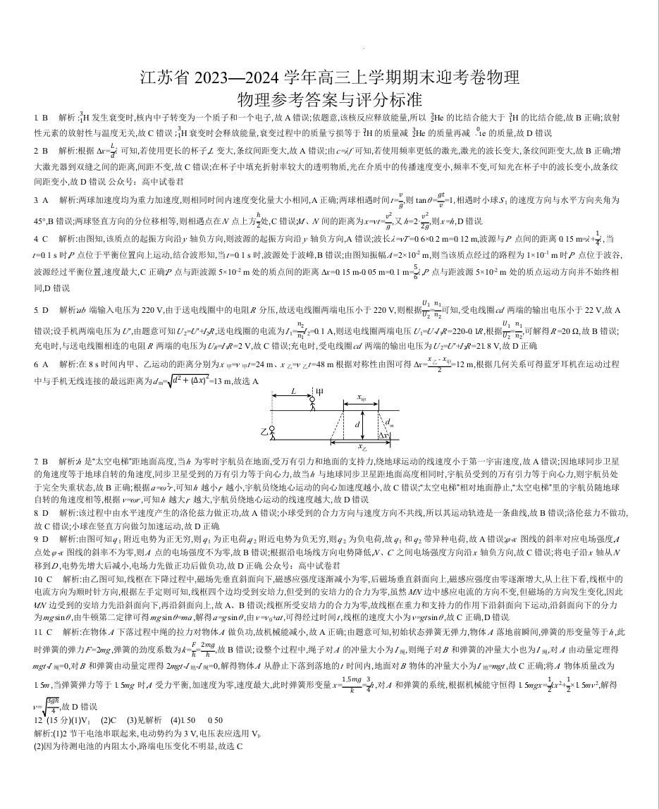 江苏省2023—2024学年高三上学期期末迎考卷 物理答案