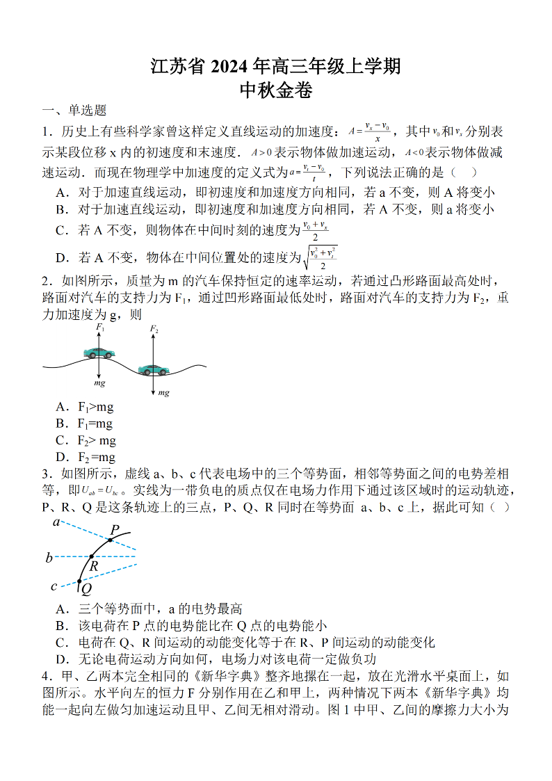 江苏省2024届高三年级上学期中秋金卷 物理