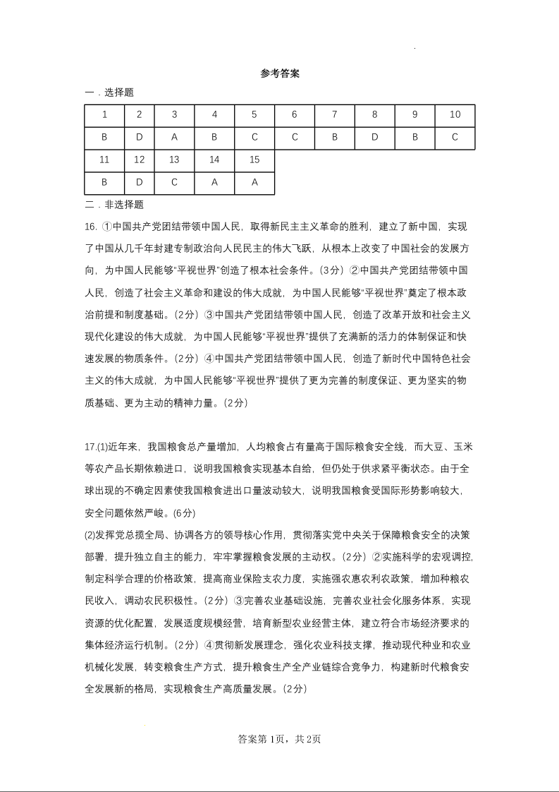 江苏省常州市联盟学校2024届高三上学期12月学情调研 政治答案