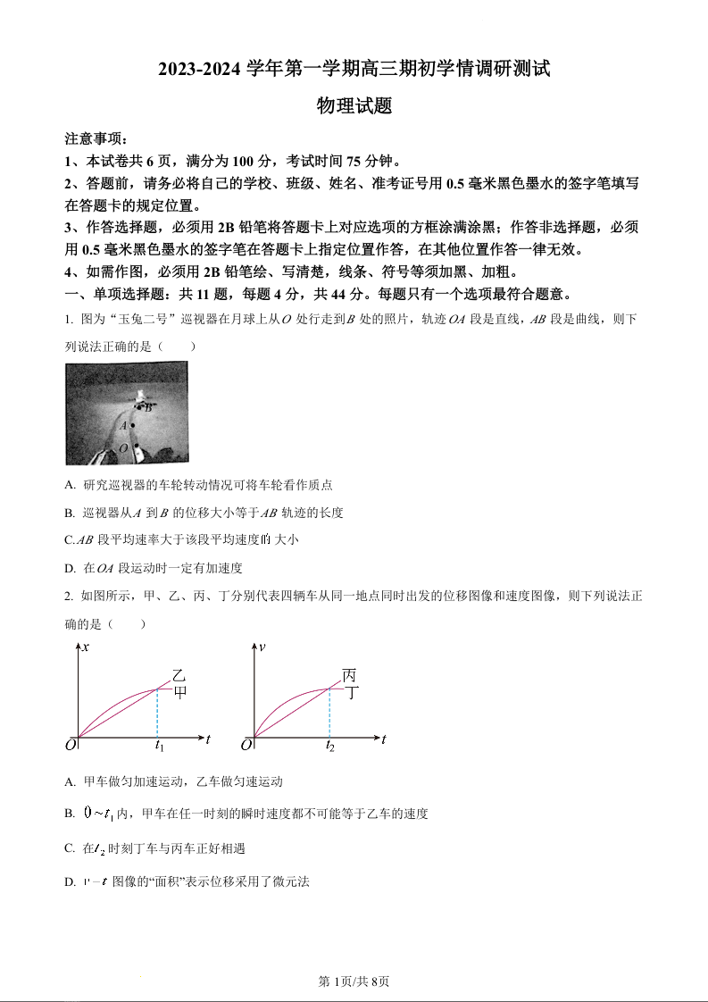 江苏省高邮市2023-2024学年高三上学期期初学情调研测试 物理
