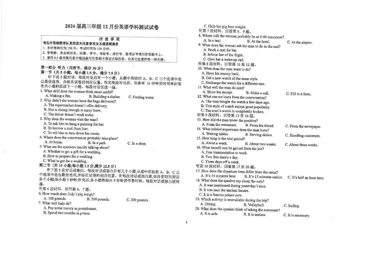江苏省海安高级中学2023-2024学年高三上学期12月月考试题 英语