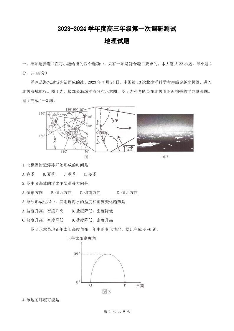 江苏省淮安市2023-2024学年度高三年级第一次调研测试 地理