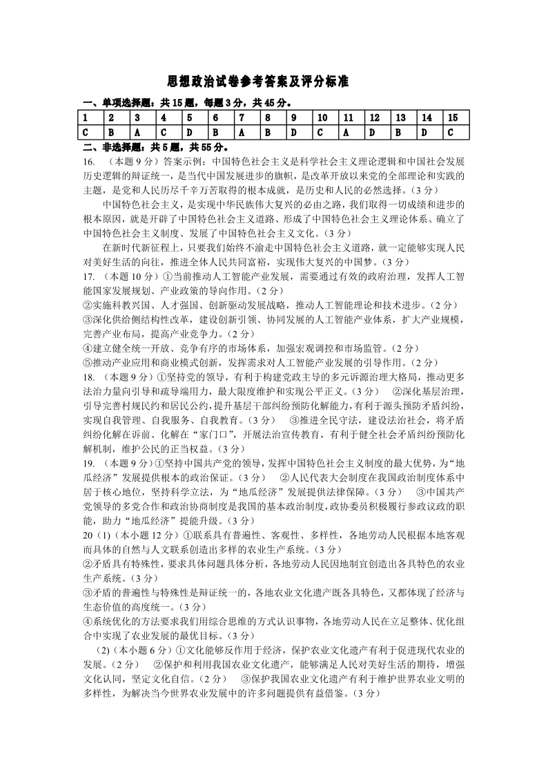 江苏省淮安市高中校协作体2023-2024学年高三上学期期中联考 政治答案