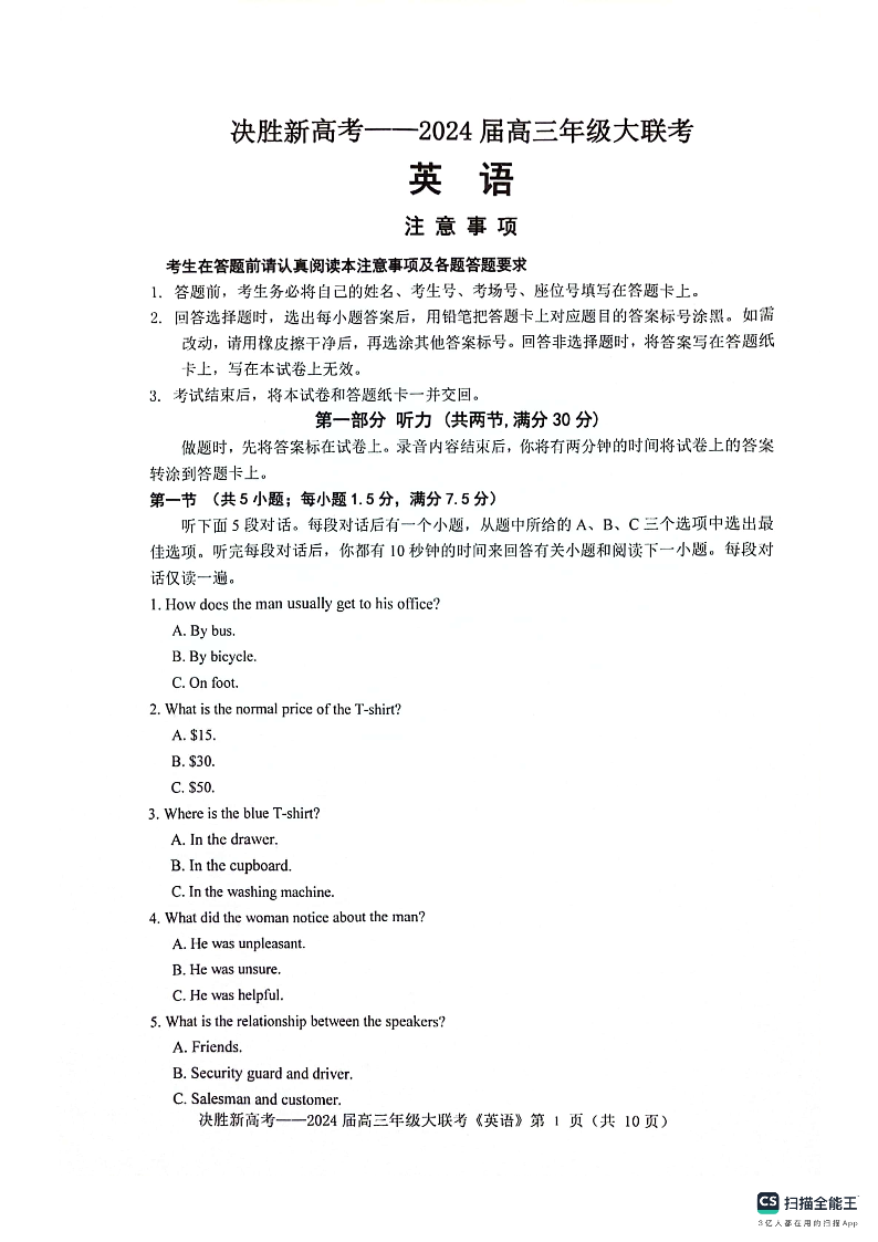 江苏省决胜新高考2023-2024学年高三上学期12月大联考 英语