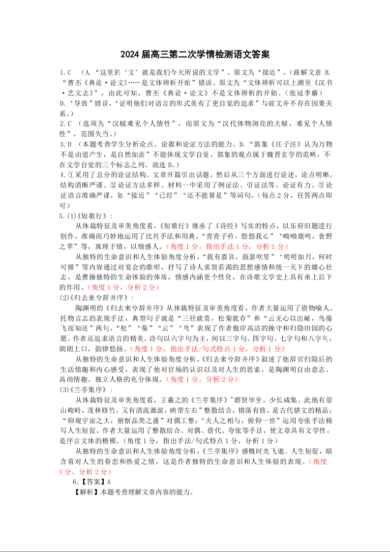 江苏省连云港市部分学校2023-2024学年高三上学期10月联考 语文答案