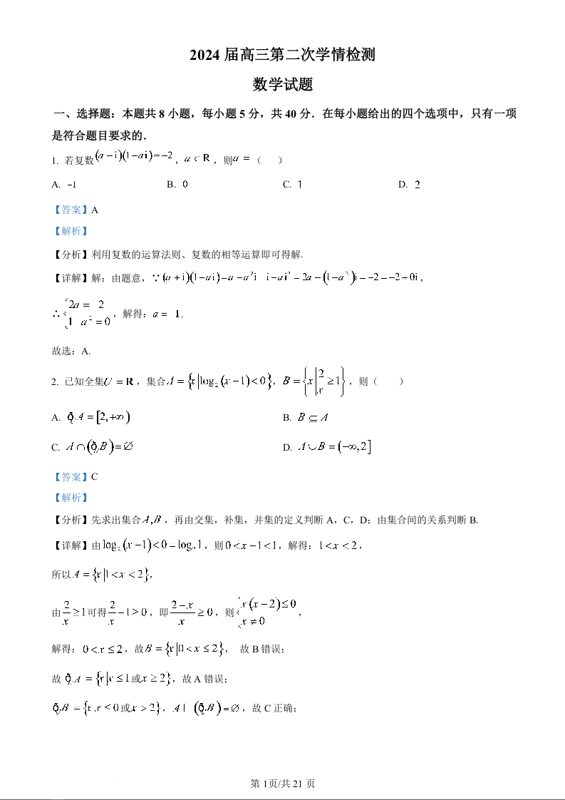 江苏省连云港市部分学校2023-2024学年高三上学期10月联考 数学答案