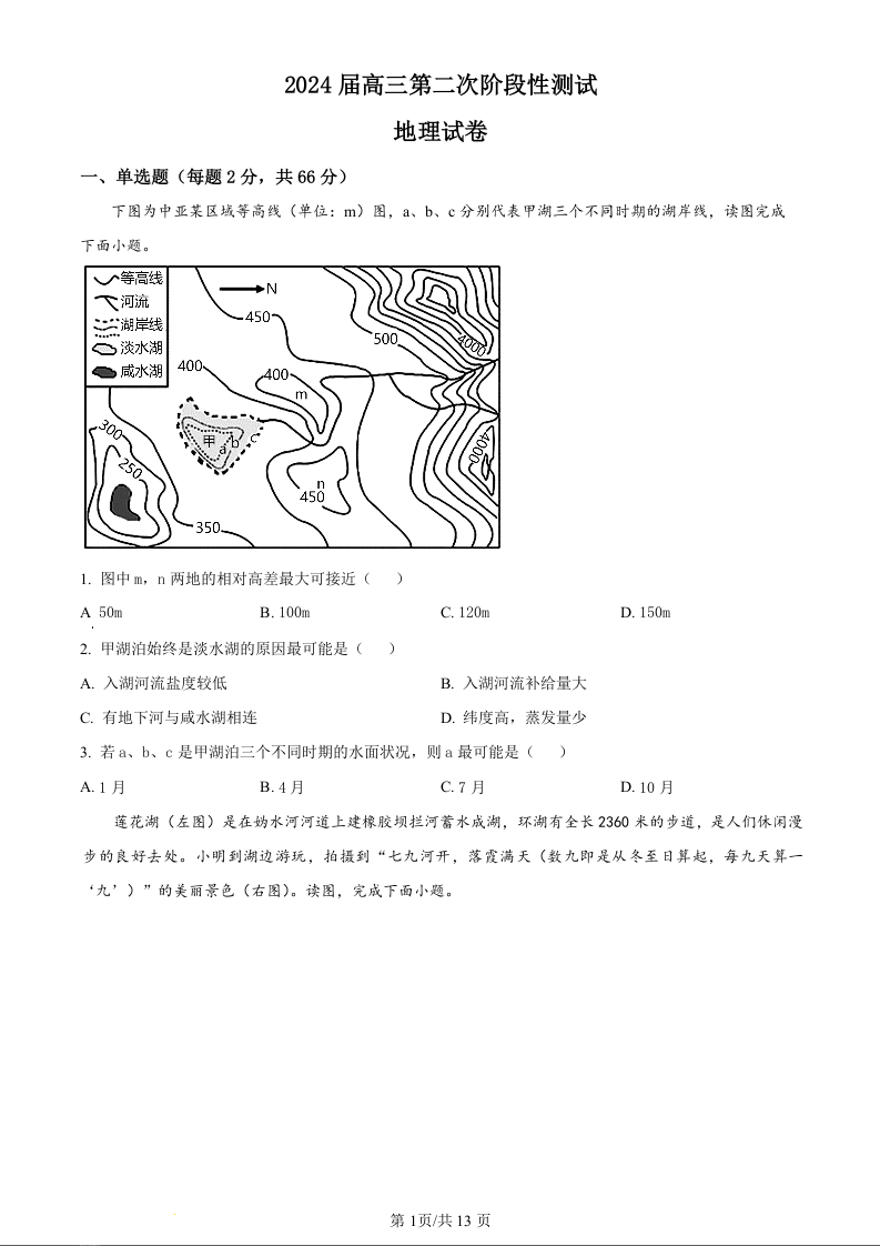 江苏省连云港市部分学校2023-2024学年高三上学期10月联考 地理