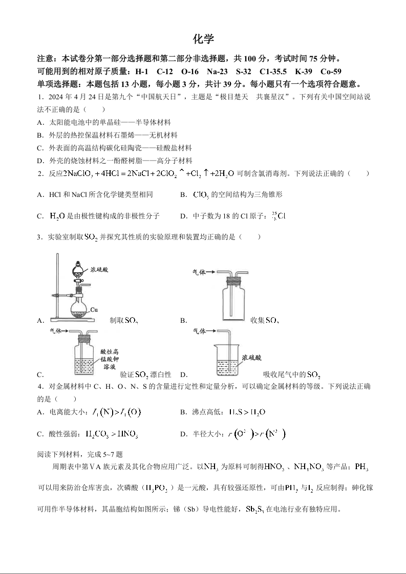 江苏省南通市海安高级中学2025届高三9月月考+化学
