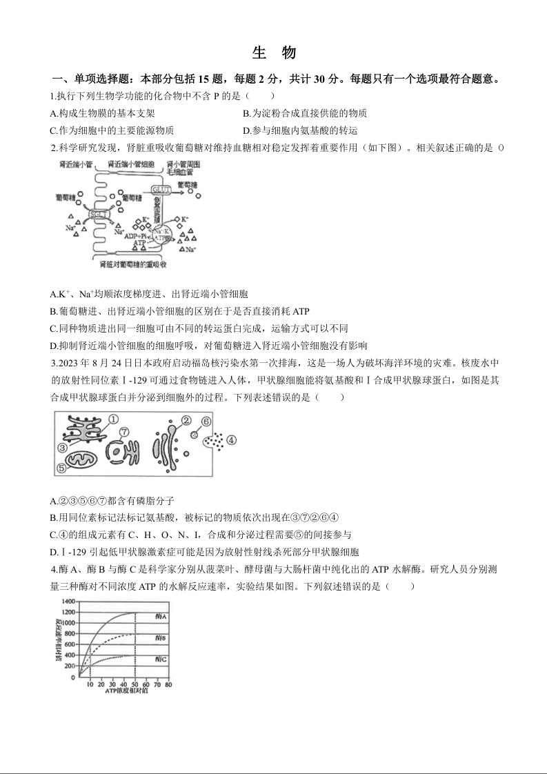 江苏省南通市海安高级中学2025届高三9月月考+生物