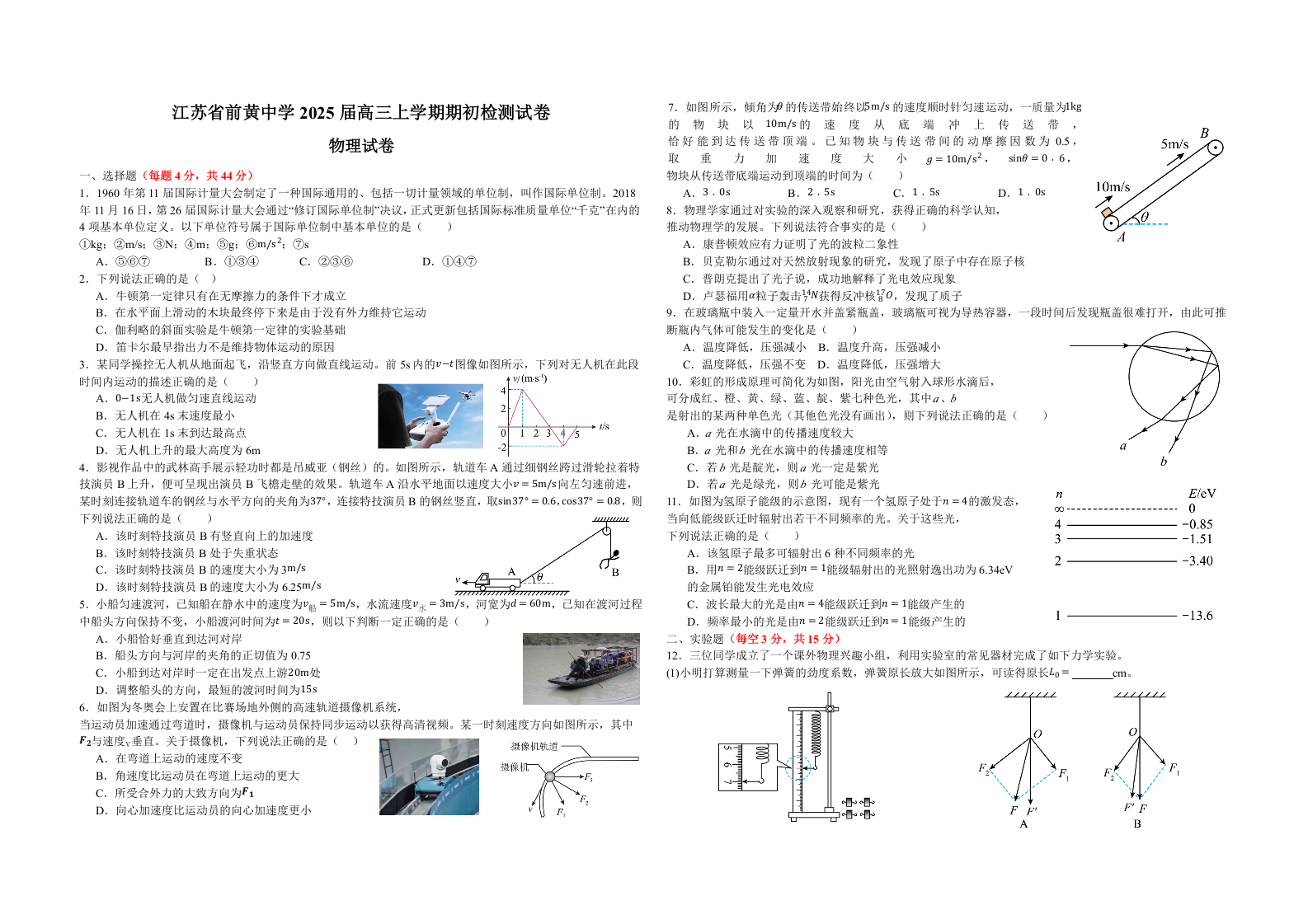 江苏省前黄高级中学2024-2025学年高三上学期期初检测+物理