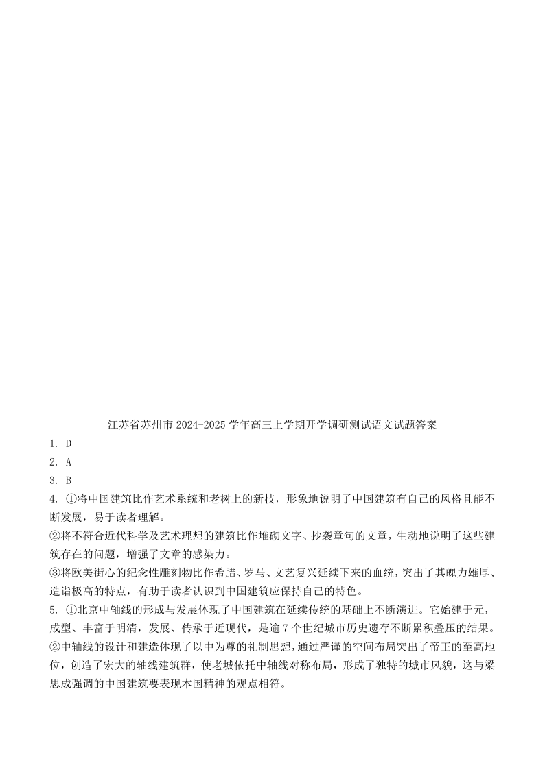 江苏省苏州市2025届高三年级期初阳光调研试卷+语文答案