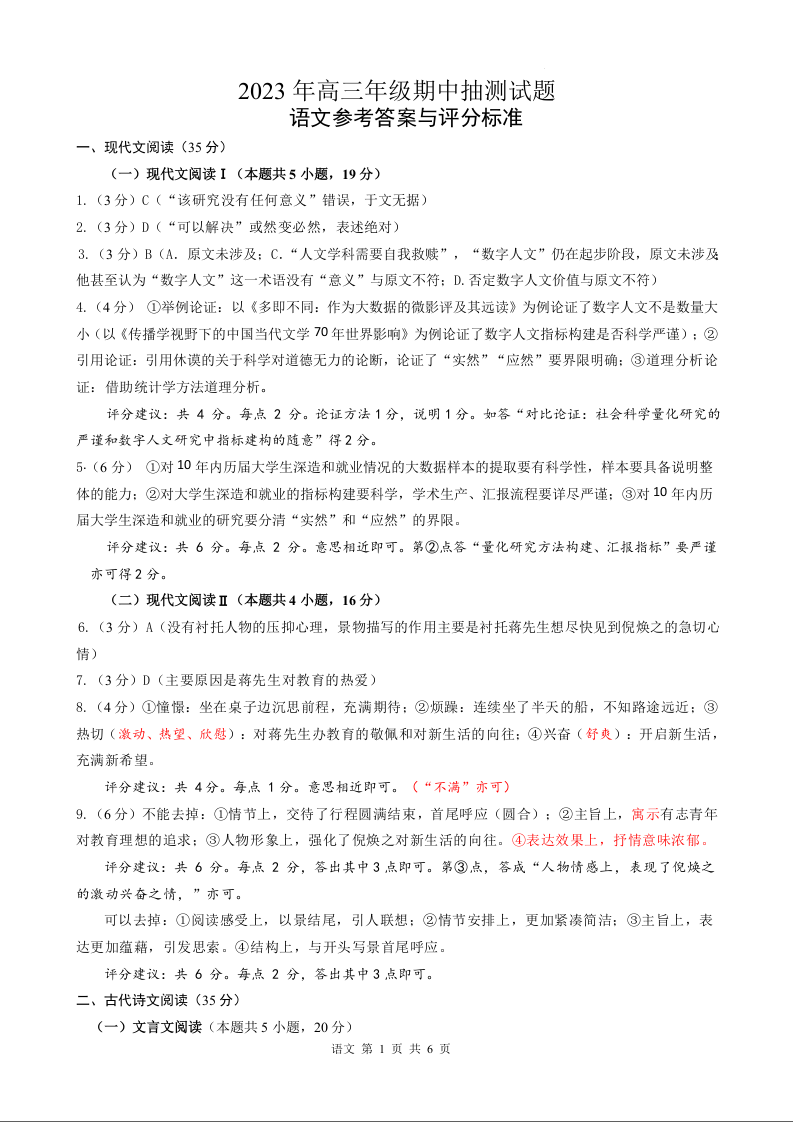 江苏省徐州市2023-2024学年高三上学期11月期中考试 语文答案