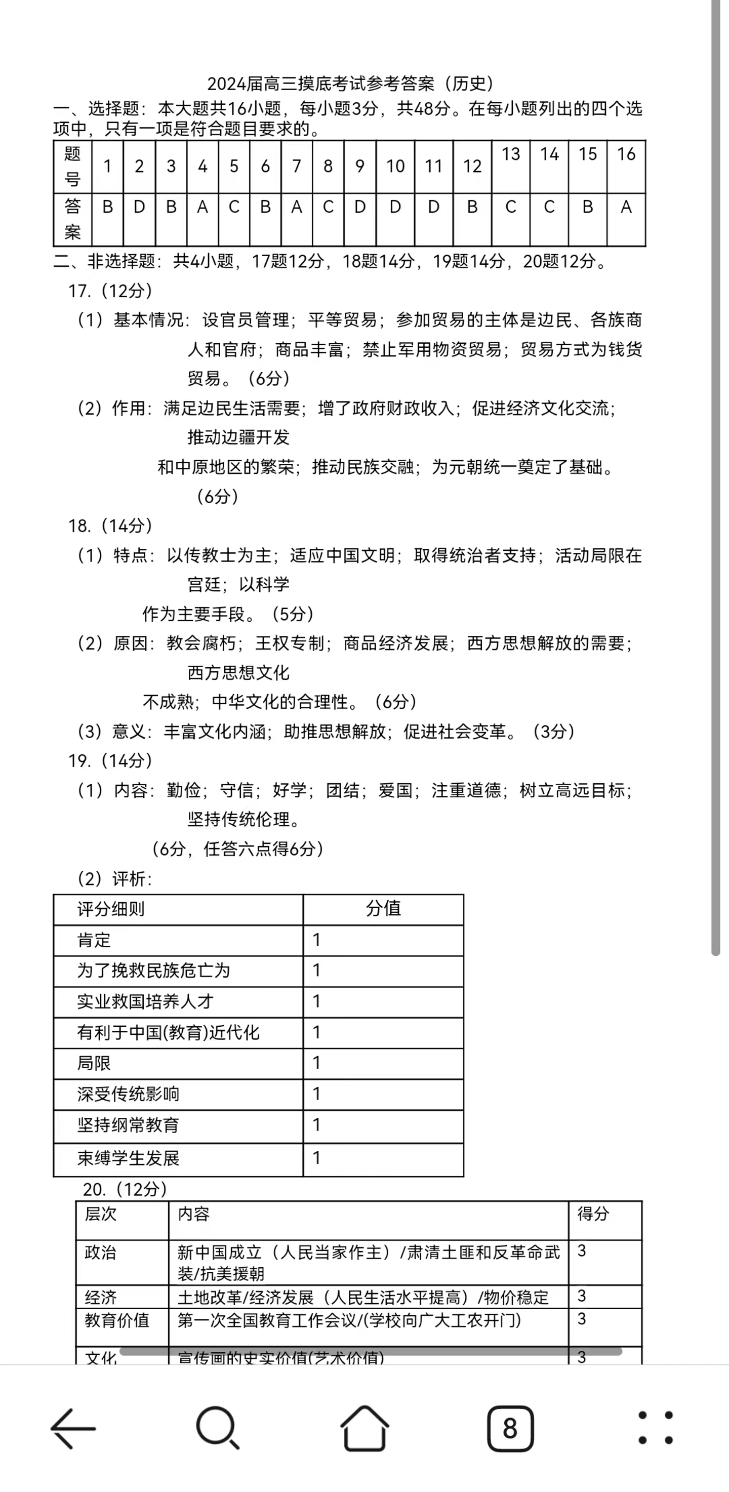 江苏省徐州市2023-2024学年高三上学期11月期中考试 历史答案