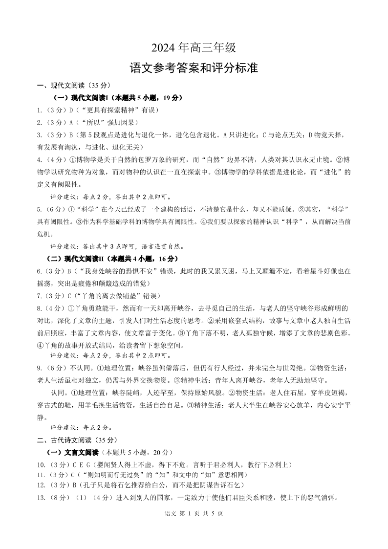 江苏省徐州市2024届高三下学期6月考前打靶试题+语文答案