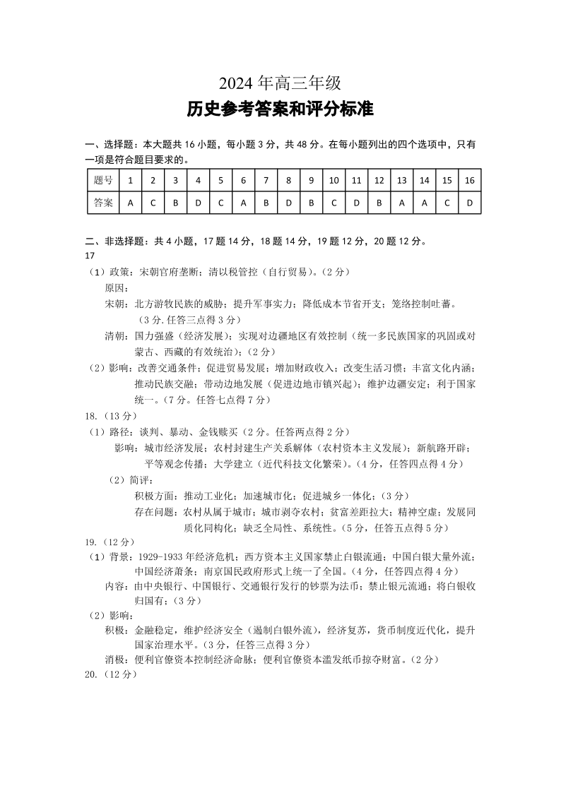 江苏省徐州市2024届高三下学期6月考前打靶试题+历史答案