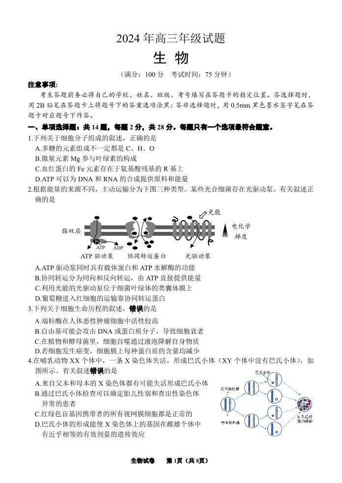 江苏省徐州市2024届高三下学期6月考前打靶试题+生物