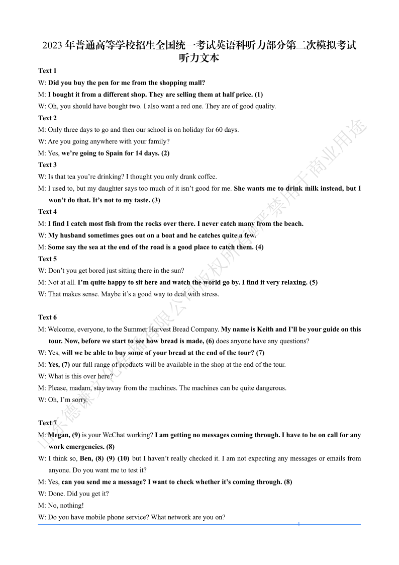 山东省济南市2022.12高三年级英语听力模拟听力试题2 原文+答案