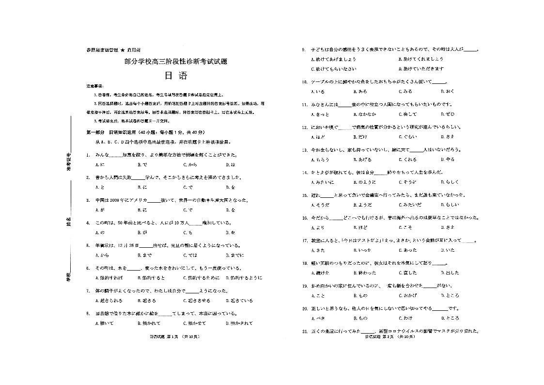 4山东省淄博市2023.4高三年级第二次模拟考试日语