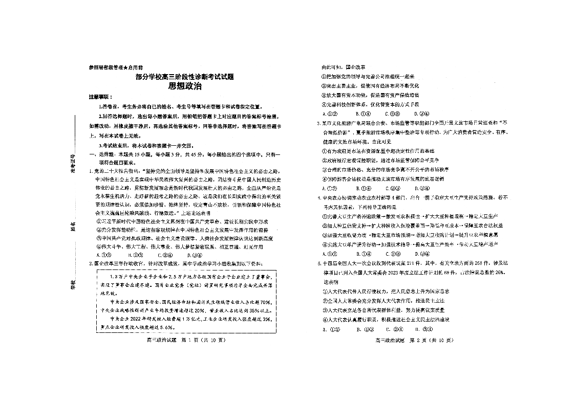 8山东省淄博市2023.4高三年级第二次模拟考试政治