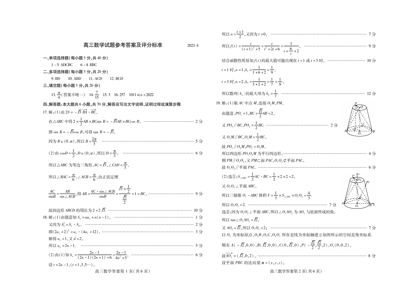 2山东省潍坊市2023.4高三年级第二次模拟考试数学答案
