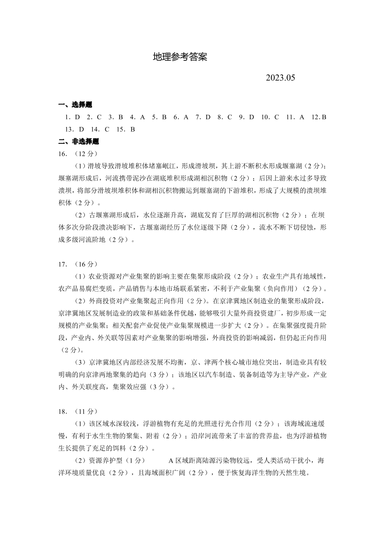 山东省青岛市2023.5高三年级第二次模拟考试地理答案