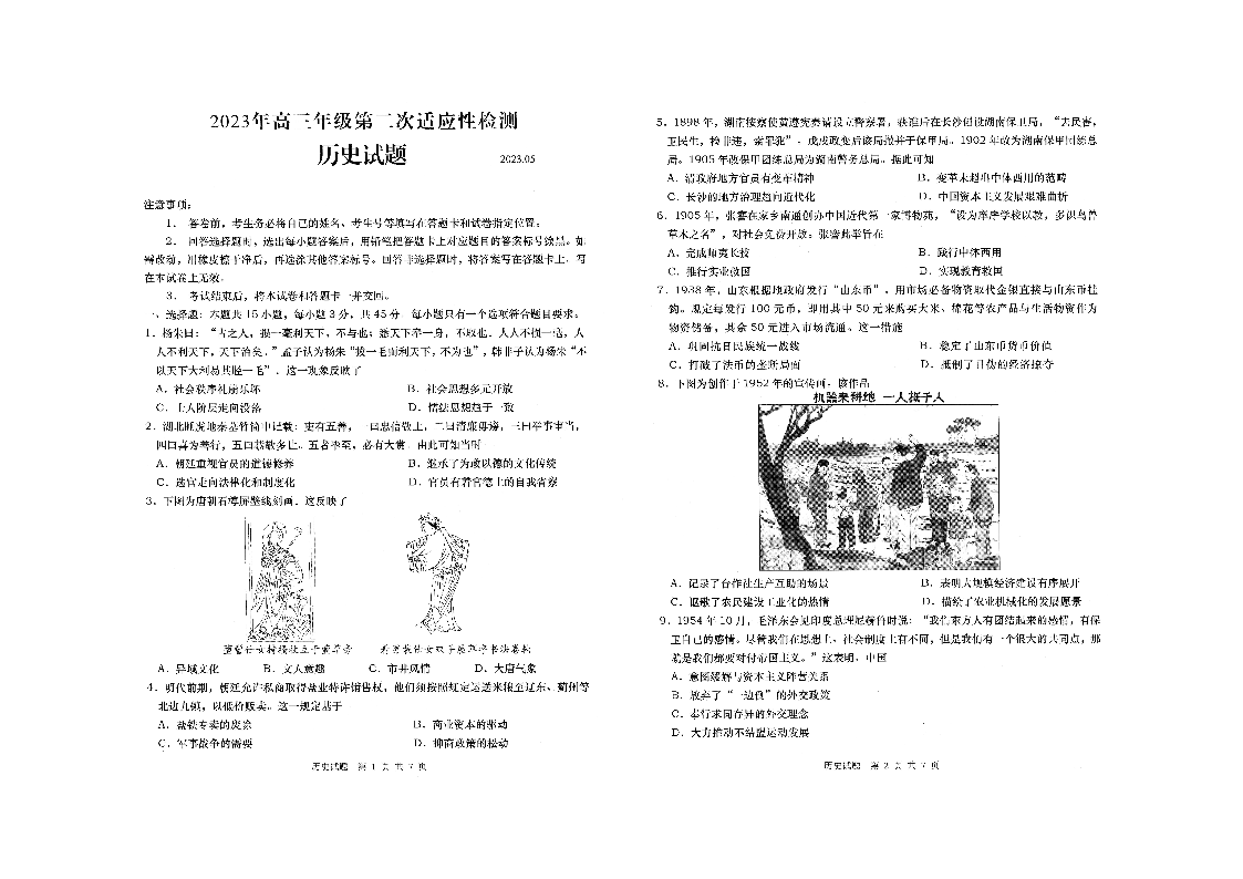 山东省青岛市2023.5高三年级第二次模拟考试历史