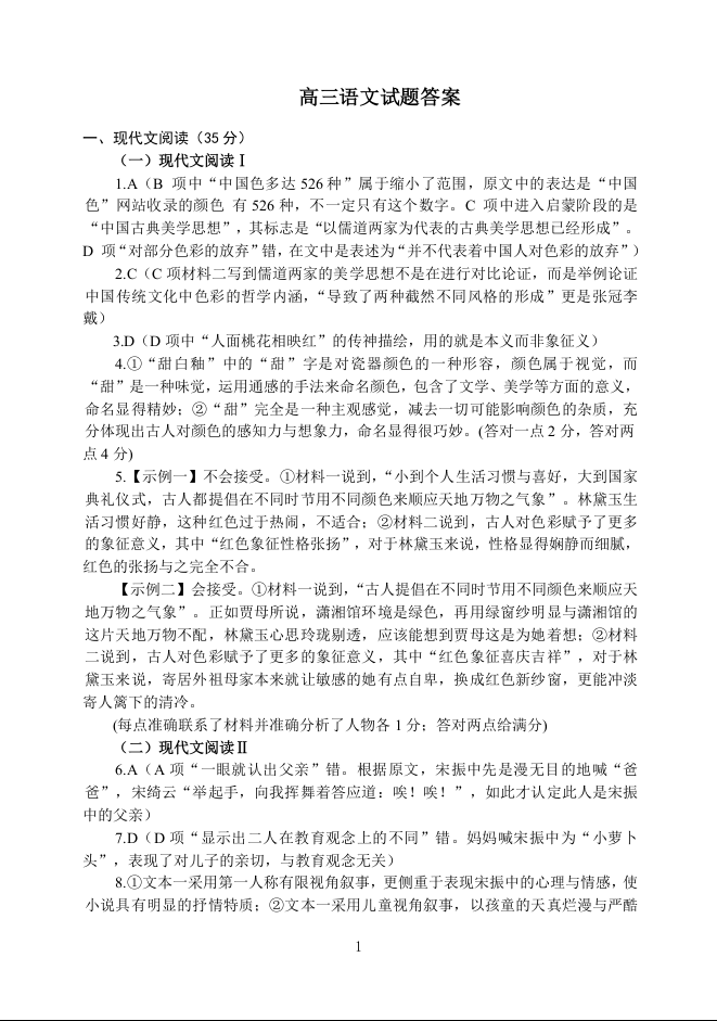 1山东省潍坊市区域2023.6高三年级考前模拟热身语文答案
