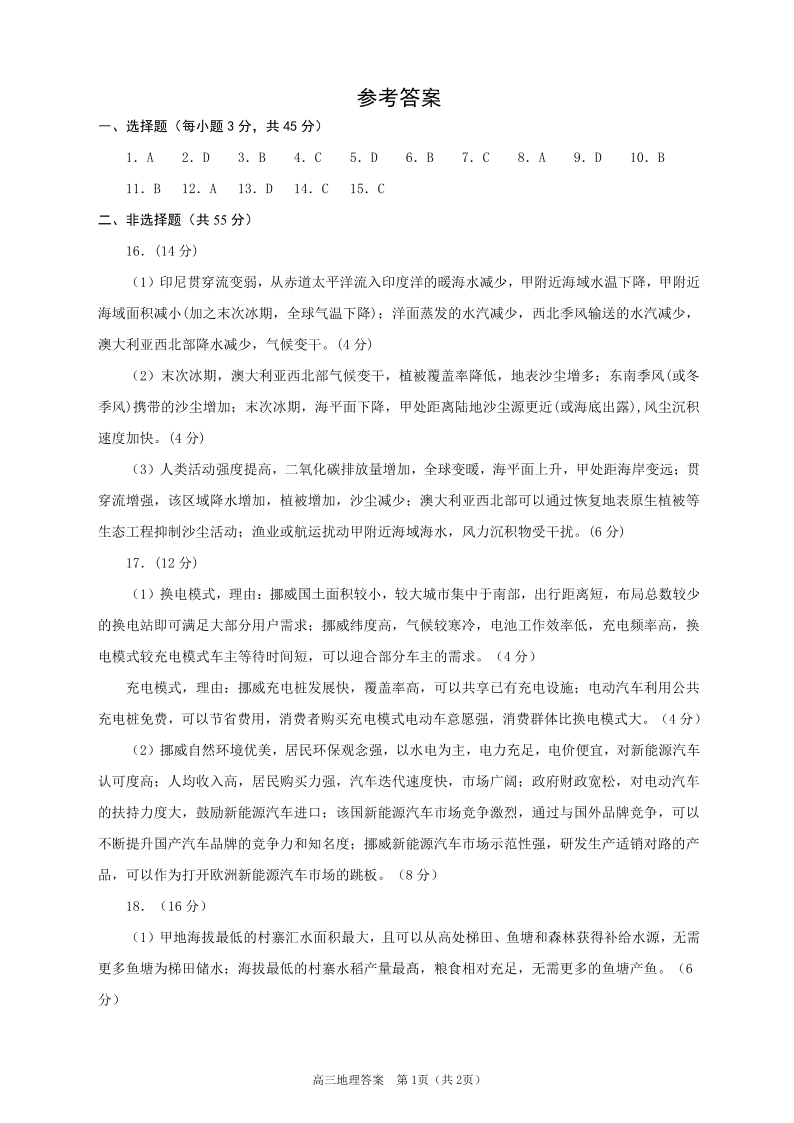山东省潍坊市区域2023.6高三年级考前模拟热身地理答案