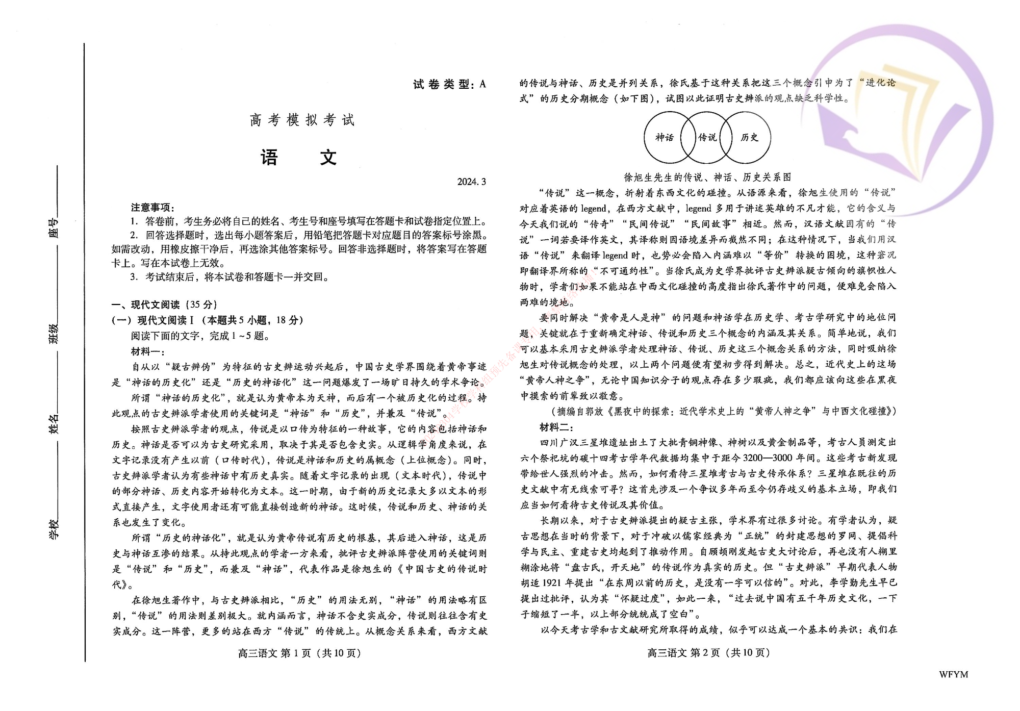 1山东省潍坊市2024.3高三年级第一次模拟语文