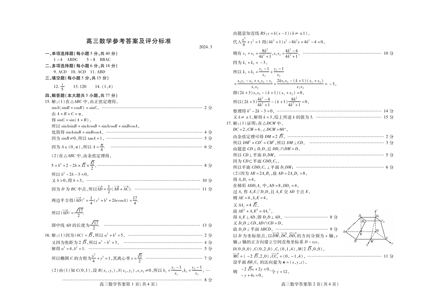 2山东省潍坊市2024.3高三年级第一次模拟数学答案
