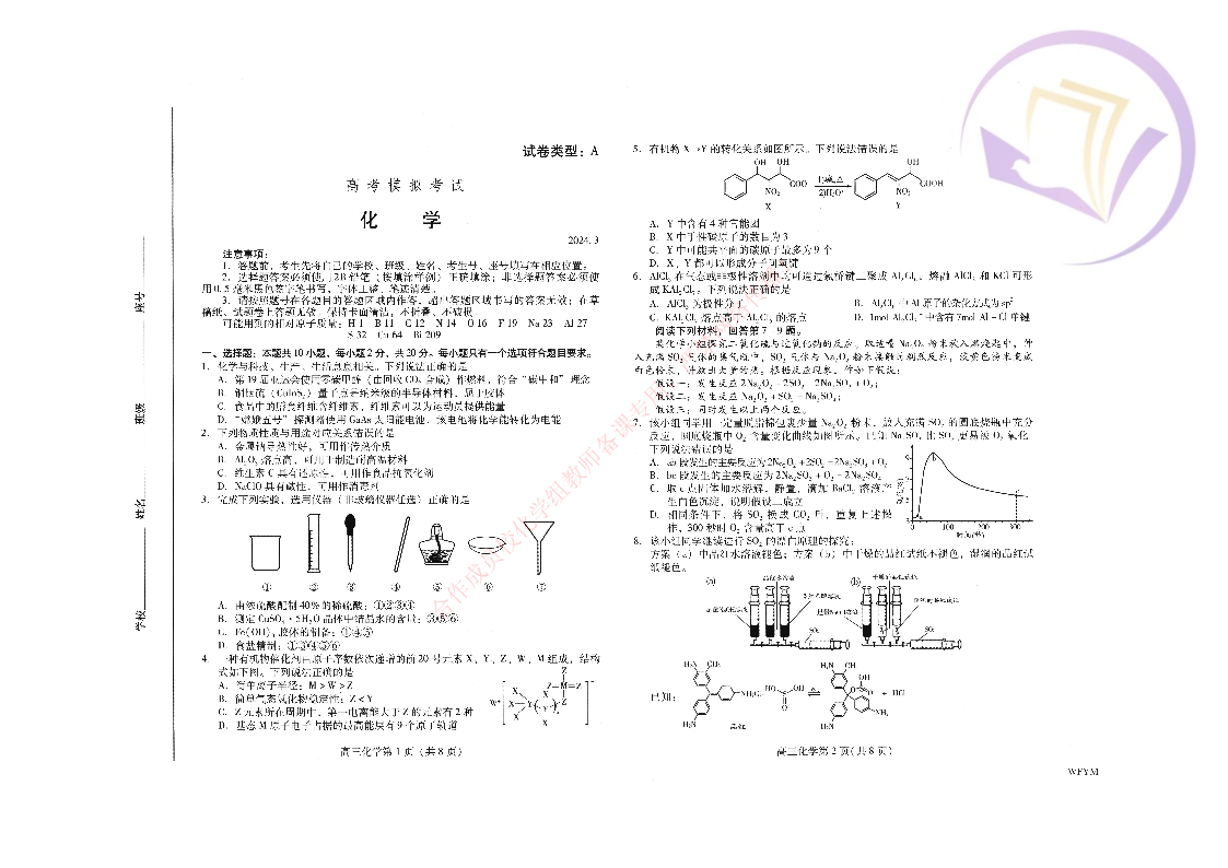 山东省潍坊市2024.3高三年级第一次模拟化学