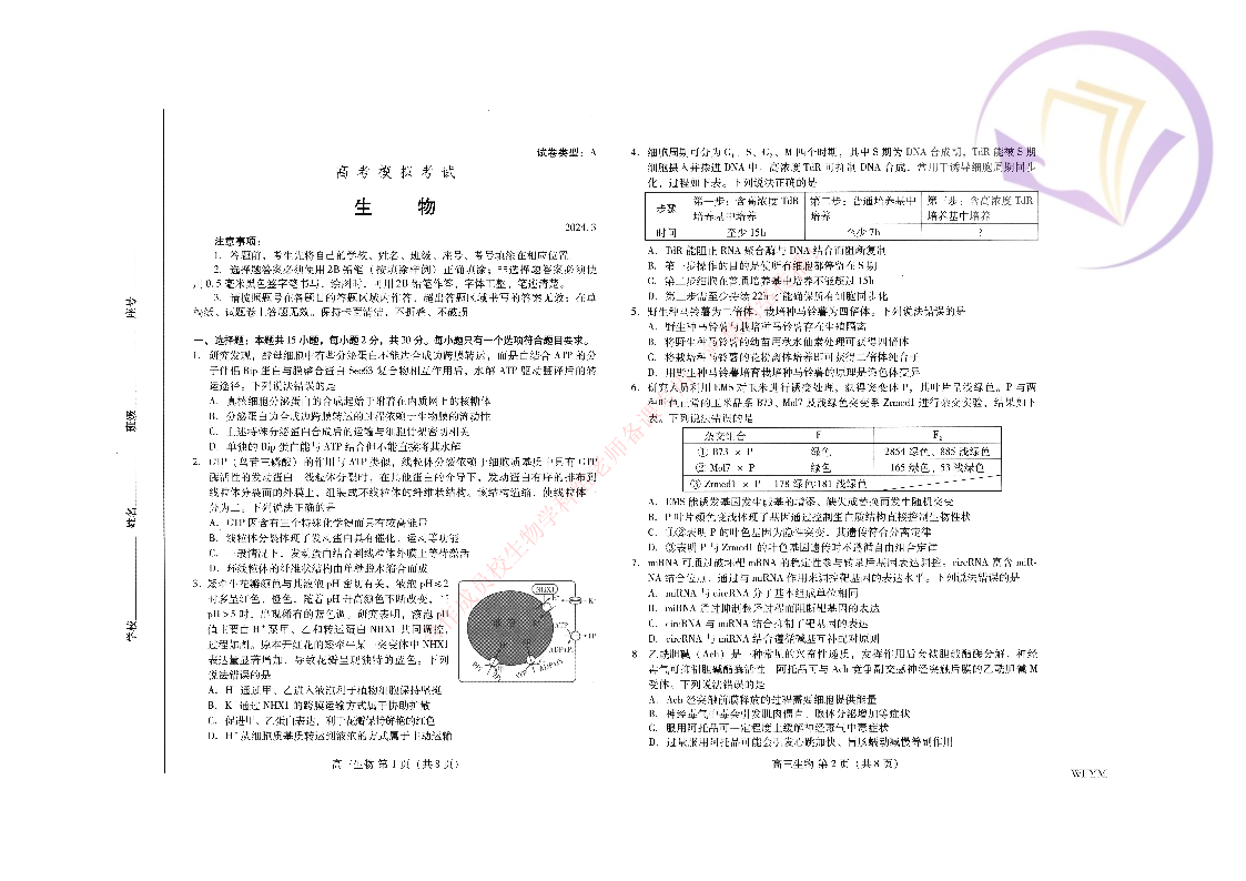 山东省潍坊市2024.3高三年级第一次模拟生物