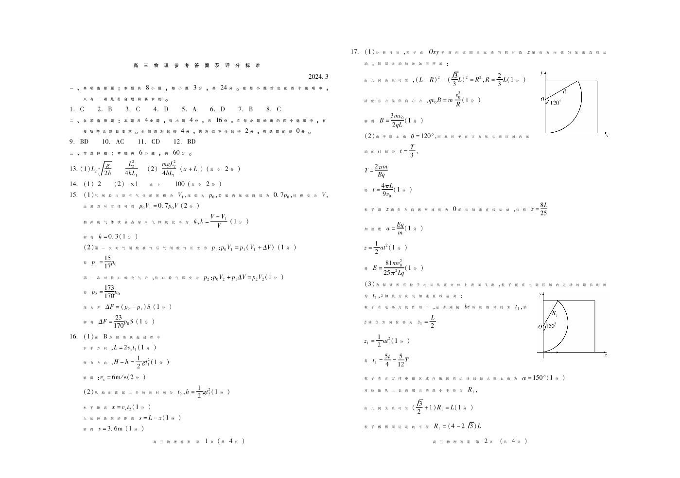 山东省潍坊市2024.3高三年级第一次模拟物理答案