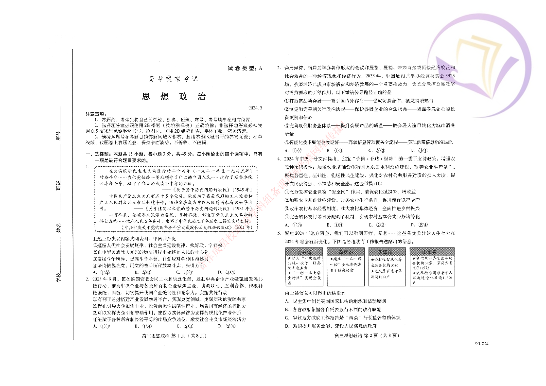 山东省潍坊市2024.3高三年级第一次模拟政治