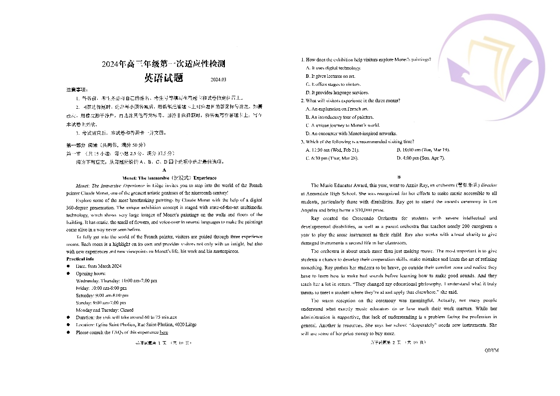 3山东省青岛市2024.3高三年级第一次模拟英语