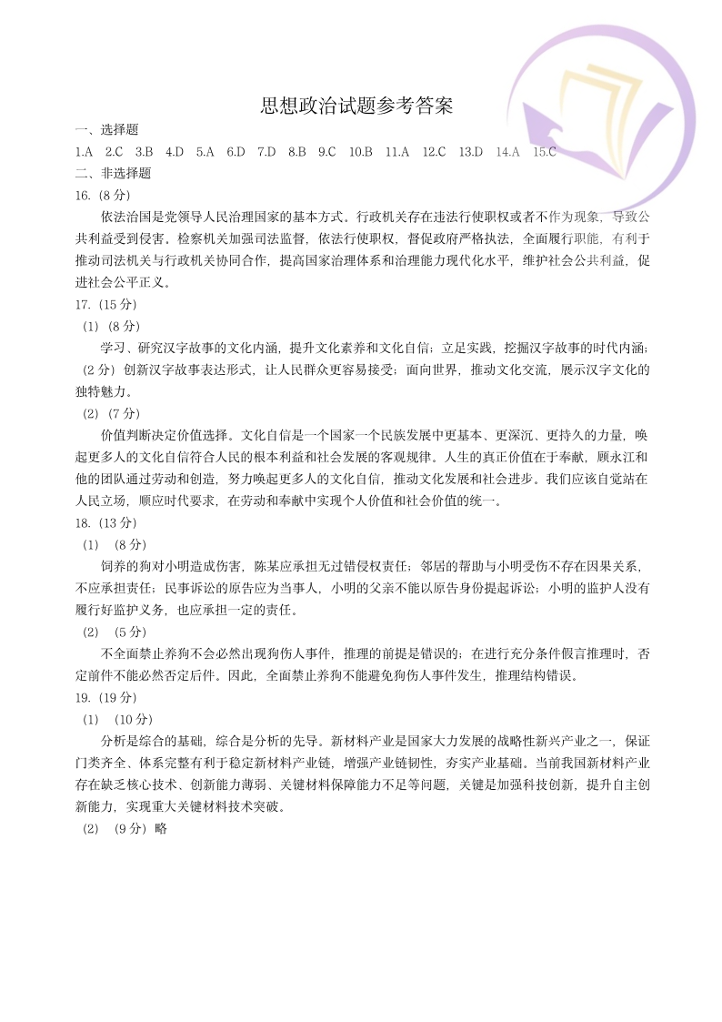 山东省青岛市2024.3高三年级第一次模拟政治答案