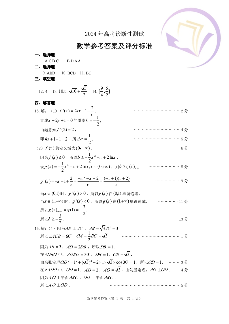 2山东省烟台市2024.3高三年级第一次模拟数学答案