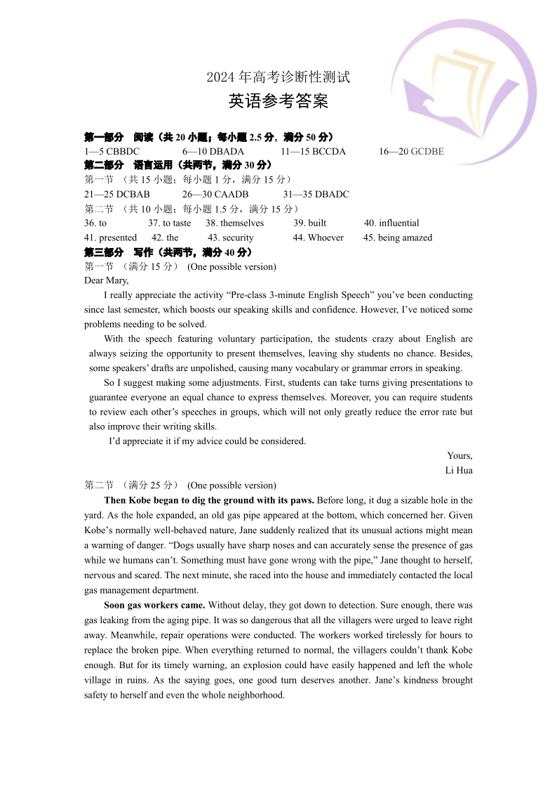 3山东省烟台市2024.3高三年级第一次模拟英语答案