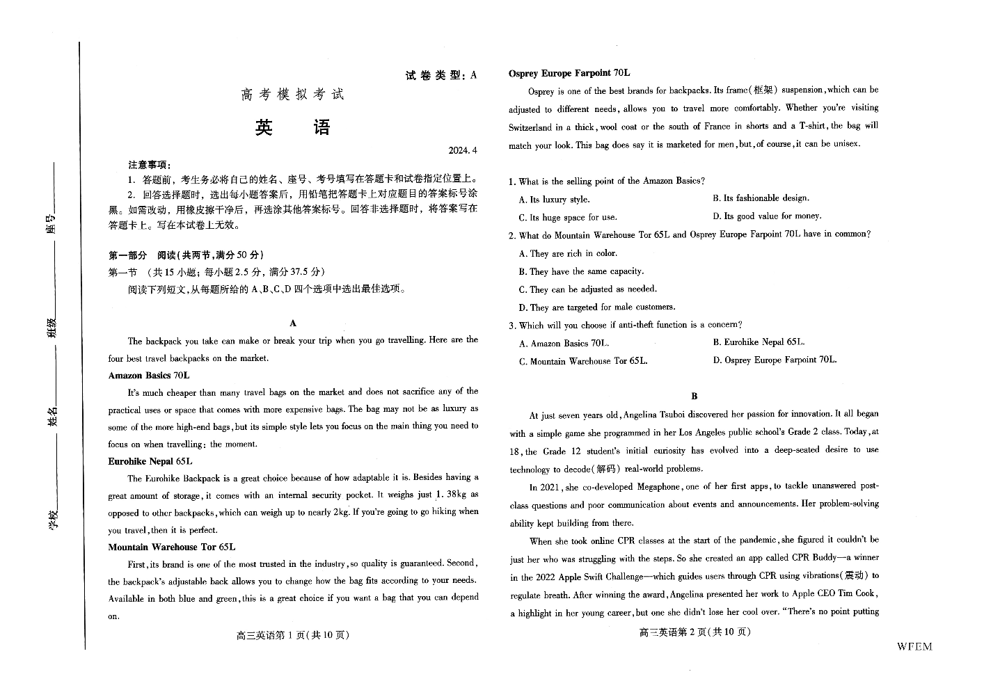 3山东省潍坊市2024.4高三年级第二次模拟英语