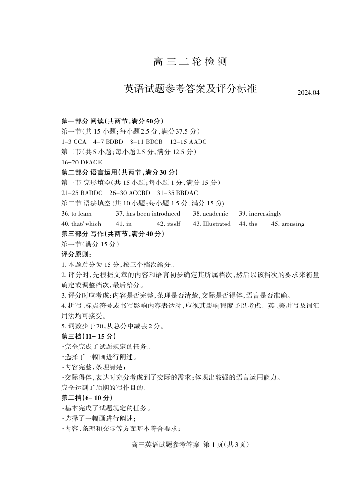 3山东省泰安市2024.4高三年级第二次模拟英语答案