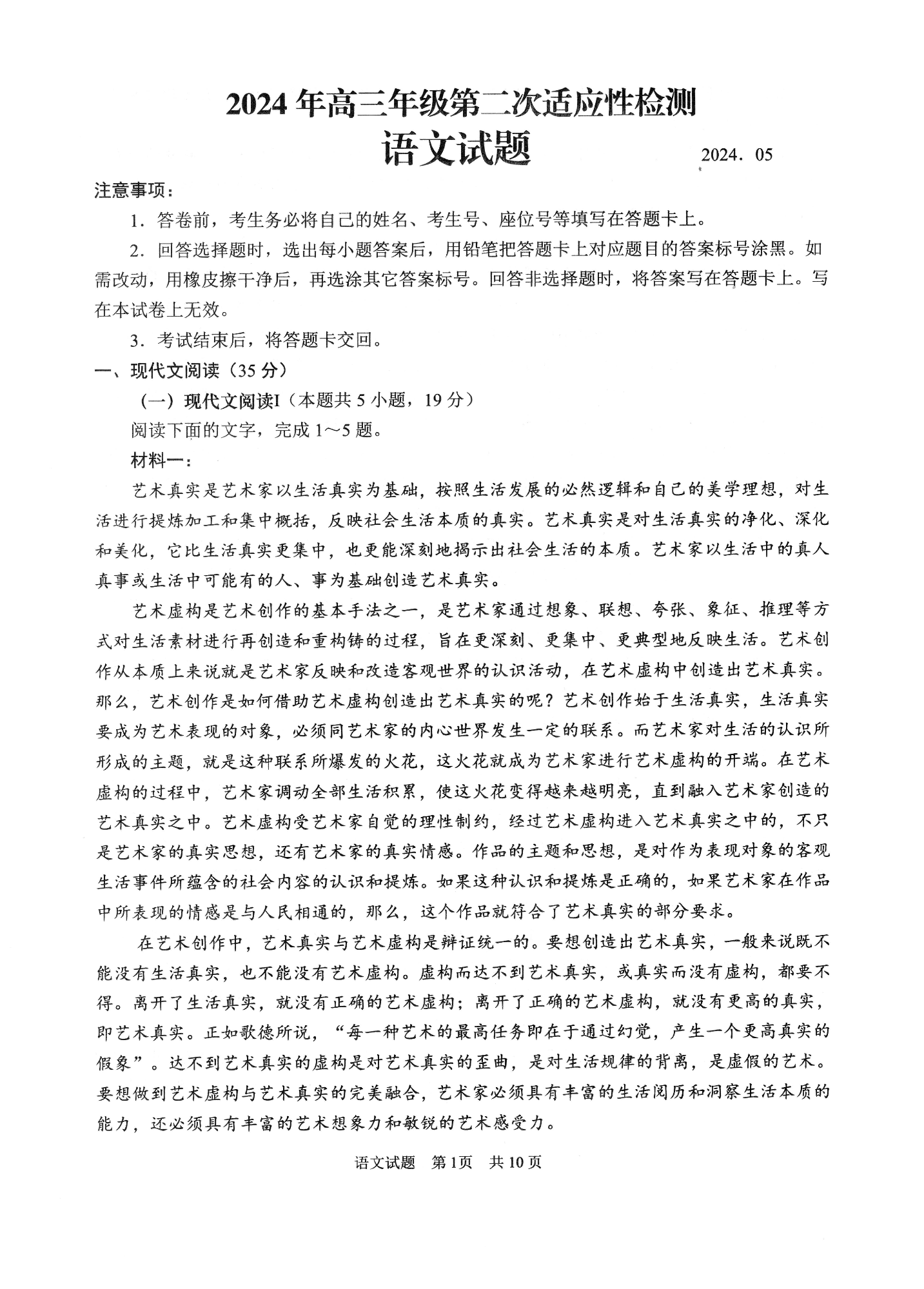 1山东省青岛市2024.5高三年级第二次模拟语文