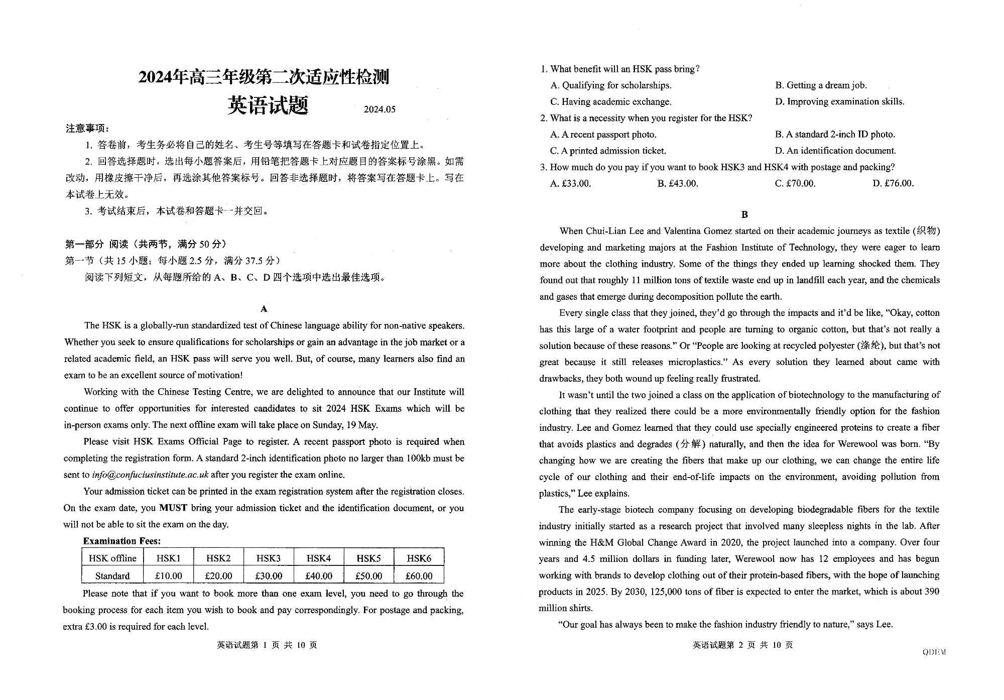 3山东省青岛市2024.5高三年级第二次模拟英语