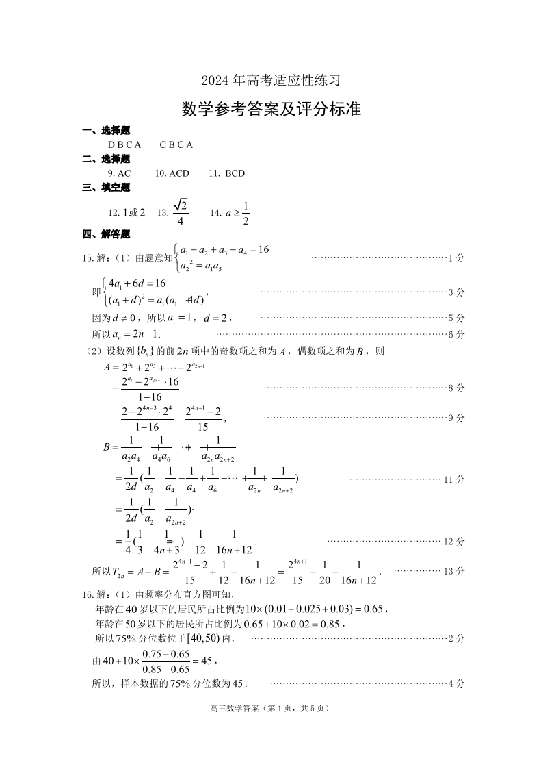 2山东省烟台市2024.5高三年级第二次模拟数学答案