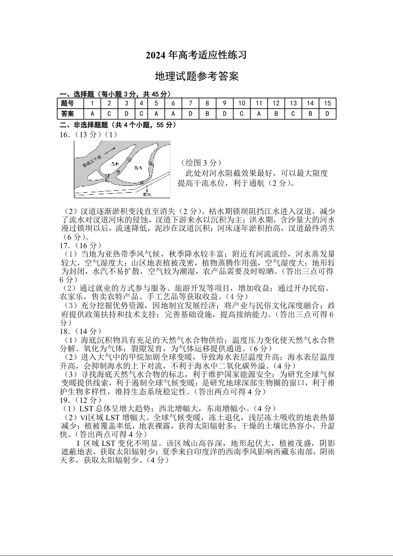 山东省烟台市2024.5高三年级第二次模拟地理答案