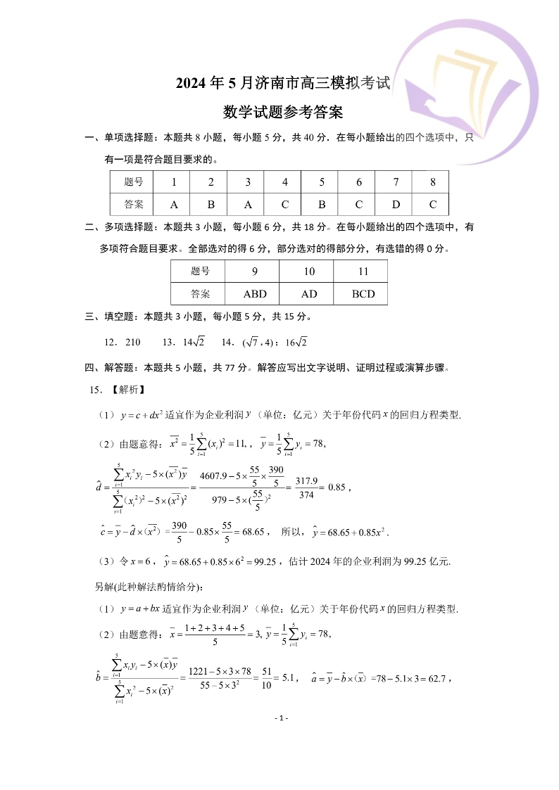 2山东省济南市2024.5高三年级第三次模拟数学答案