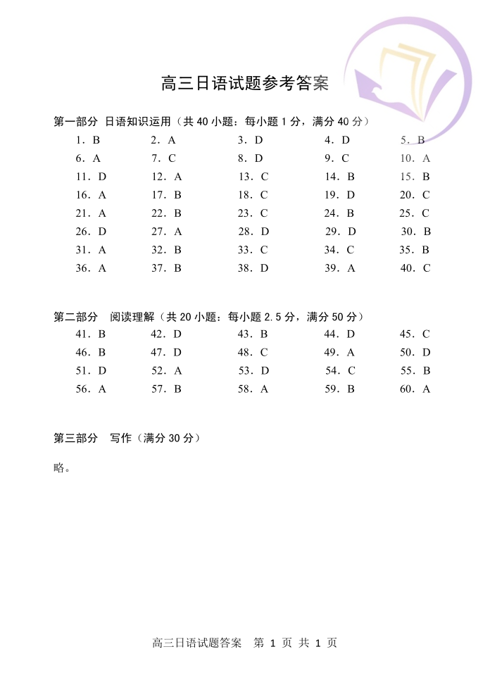 4山东省济南市2024.5高三年级第三次模拟日语答案