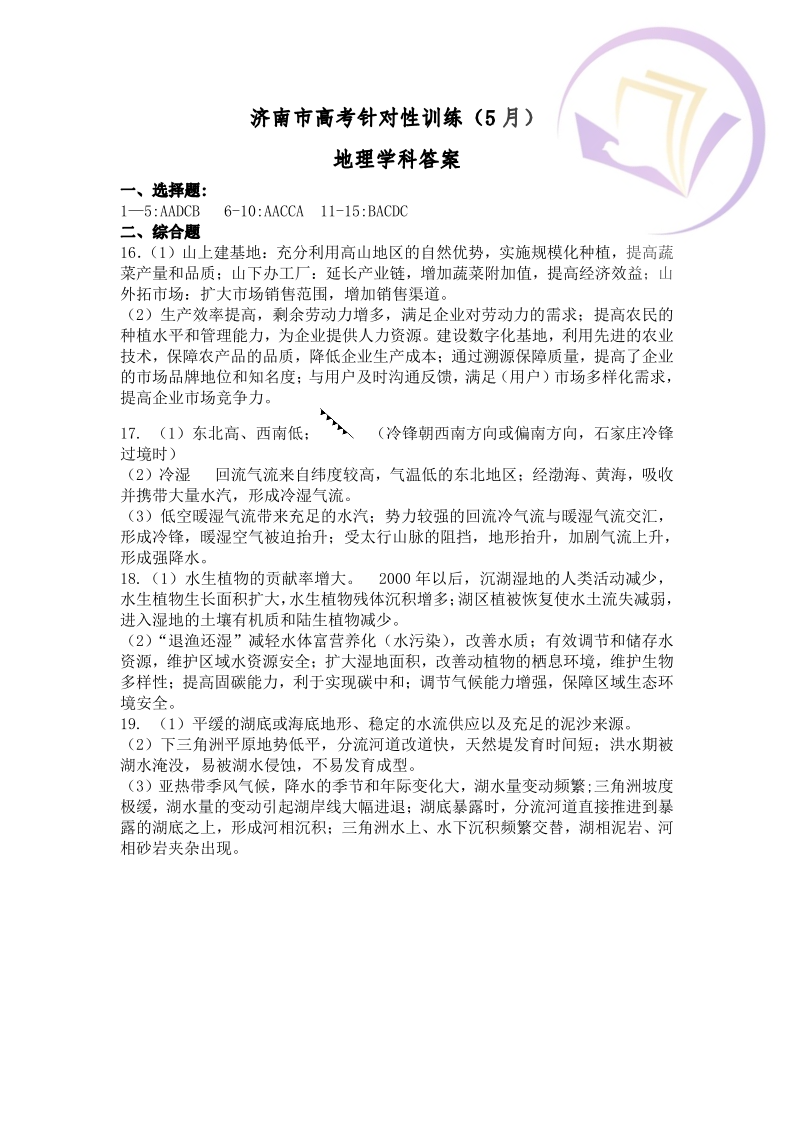 山东省济南市2024.5高三年级第三次模拟地理答案