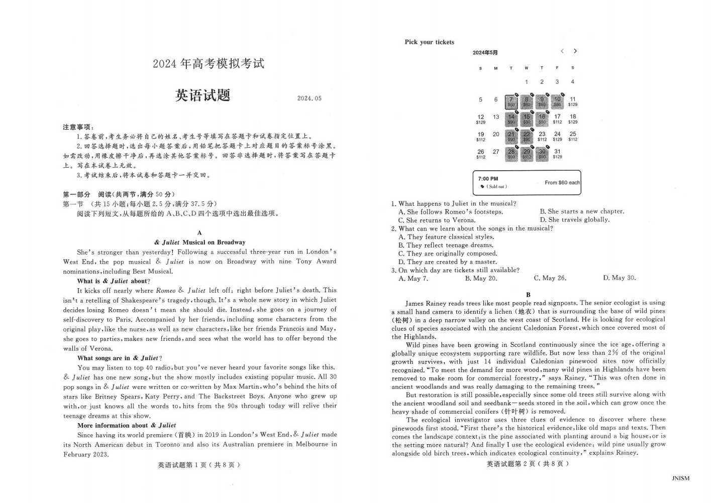 3山东省济宁市2024.5高三年级第三次模拟英语