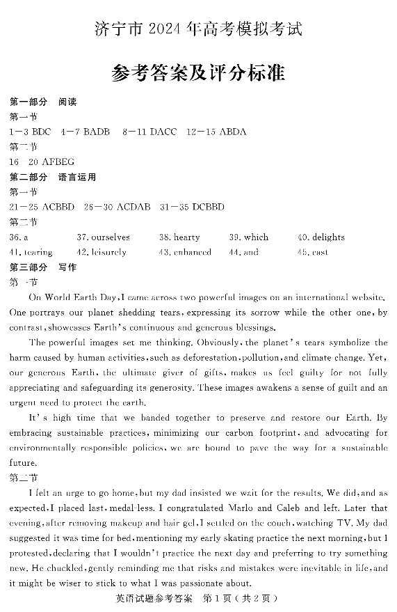 3山东省济宁市2024.5高三年级第三次模拟英语答案