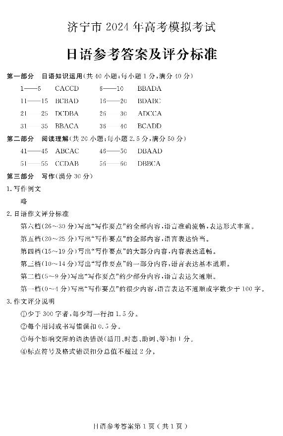 4山东省济宁市2024.5高三年级第三次模拟日语答案